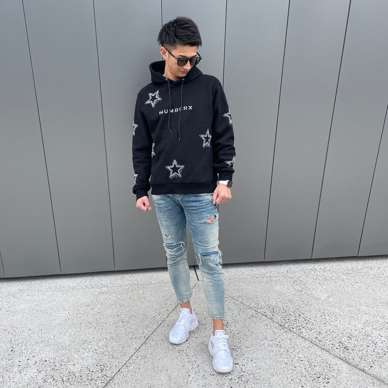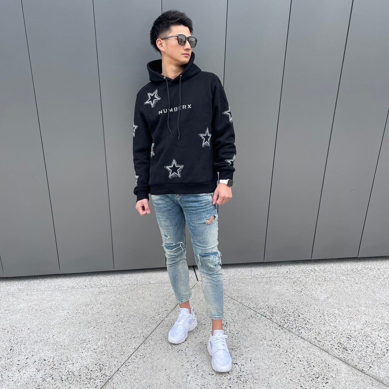 NUMBERX スターラインストーン スウェットパーカー "BLACK"【数量限定】